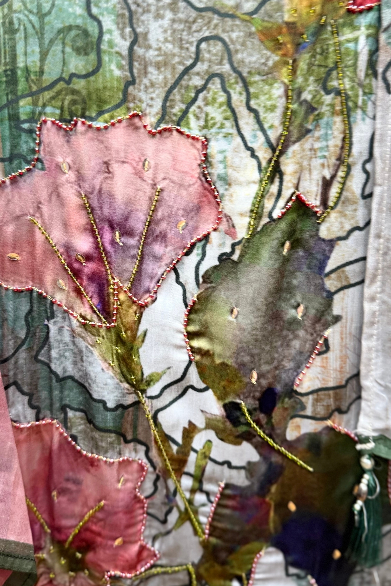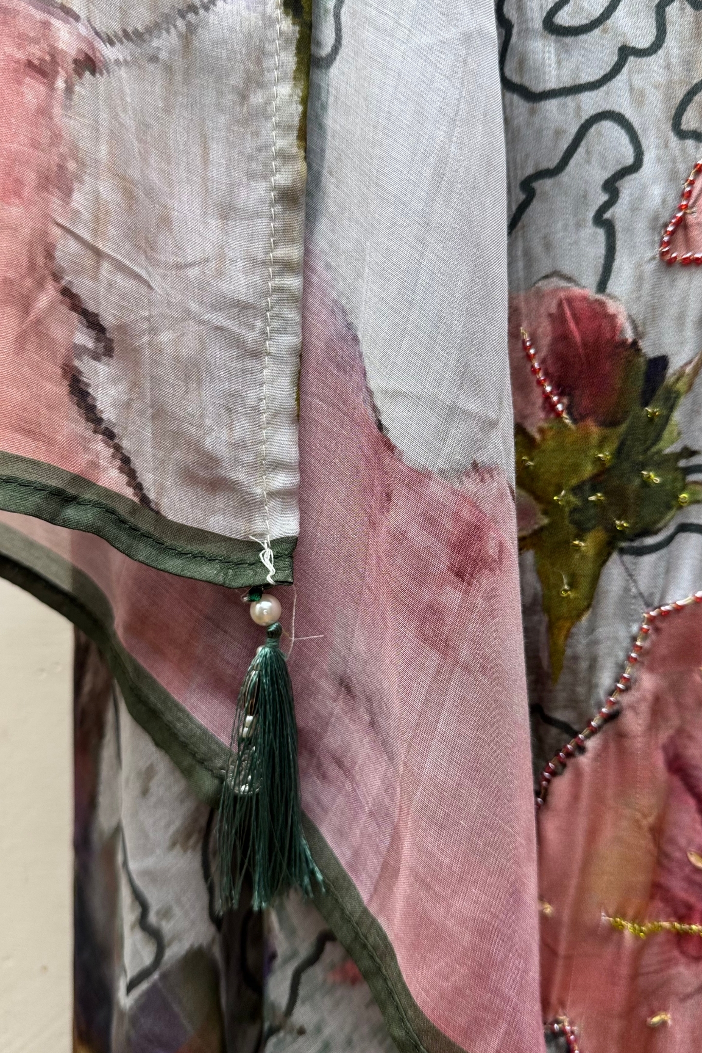 The shirt features detailed digital printed shirt with highlighting on flower that adds a glamorous touch to the fabric. The work is done with precision and care, ensuring each detail stands out beautifully while maintaining the elegance of the fabric.